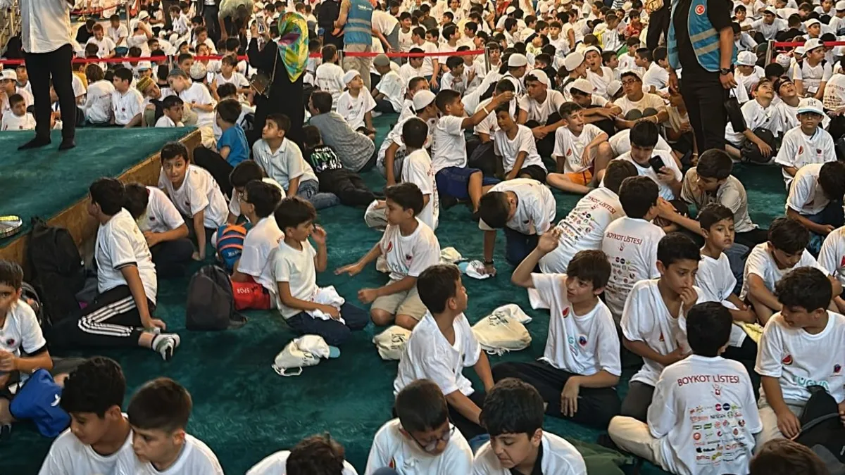 İstanbul'un 39 ilçesinde, 208 okulda Milli Eğitim Bakanlığı iş birliğiyle eğitim gören ortaokullu öğrenciler, dördüncü Ayasofya Buluşması'nda Ayasofya-i Kebir Cami-i Şerifi'ni tüm coşku ve heyecanlarıyla inlettiler.