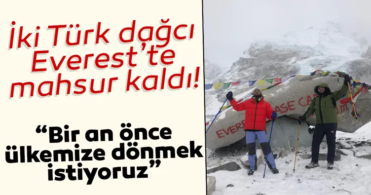 SABAH'a konuşan Muhammed Emin Özyazıcı, "Şu an 5 bin 150 metredeyiz. Everest Ana Kampı'na tırmanıyorduk. Çok fazla irtifa kazandığımız için yüksek irtifa hastalığan yakalandık ve son köy olan Gorakshep Köyü'ne geri döndük. Baş ağrısı mide bulantısı baş dönmesi sorunları var. Sigorta poliçemiz helikopteri karşılamadığı için ve bizim de helikopter ücretini karşılayamadığımız için yardım istedik. Bir an öncce helikopter ile alnıp irtifa kaybettirilmememiz gerekiyor. Şu an dışarıda fırtına var. Hava ise eksi 15-20 derece. Bir an önce ülkemize dönmek istiyoruz. Hayati tehlikemiz yok." dedi.