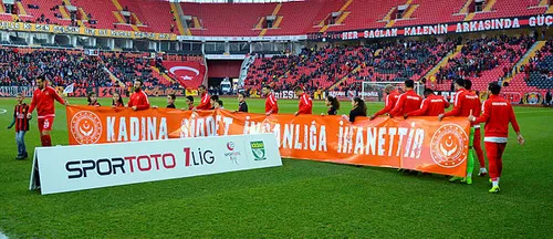 Büyükşehir Belediye Erzurumspor, Spor Toto Süper Lig'in 13. haftasında Kazım Karabekir Stadyumu'nda Antalyaspor ile karşılaştı. Antalyasporlu futbolcular sahaya "Kadına şiddet İnsanlığa inahettir" pankartıyla çıktı.