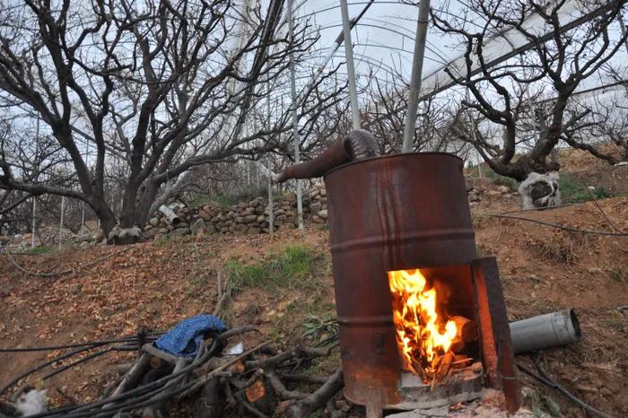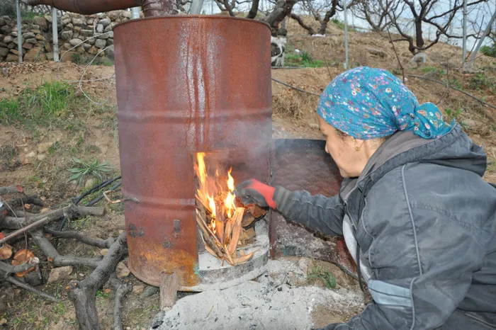 Mersin'in Silifke İlçesi Keben Mahallesinde örtü altı erik üreticiliği yapan Murat Temur eşi Zekiye Temur ile birlikte 24 saatini erik serasının içinde geçiriyor. Seranın yırtılan naylonları tamir edilip, sobalar sabaha kadar yakılacak olan odunlarla dolduruluyor.
