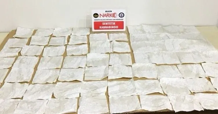 Araçta yapılan armalarda araçta bulunan çok sayıda peçete ekipleri şüphelendirdi. Peçeteleri incelemeye alan ekipler, Sentetik Kannobinoid adı verilen Bonzai maddesinin peçetelere emdirildiğini tespit etti. Yaklaşık değeri 400 bin Türk lirası olan peçetelere el koyan ekipler, otomobilde bulunan T.K ve M.G'yi gözaltına aldı. Akıllara durgunluk veren uyuşturucu madde ticareti yöntemini geliştiren iki zanlı çıkarıldıkları mahkemece tutuklanarak ceza evine gönderildi.