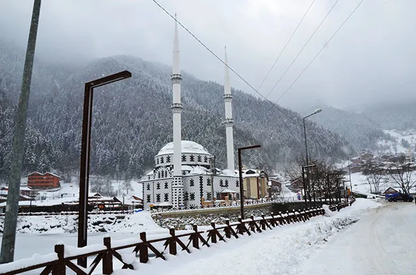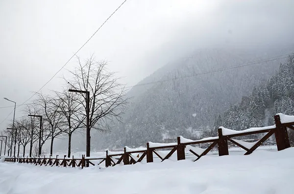 Trabzon'da dünyaca ünlü turizm merkezi Uzungöl, kar yağışıyla birlikte beyaza büründü.