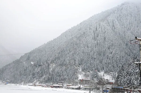 Trabzon'un Çaykara ilçesine 20 kilometre uzaklıkta, denizden 1250 metre yükseklikte yer alan doğa harikası turizm merkezi Uzungöl, yağan kar ile beyazla kaplandı.