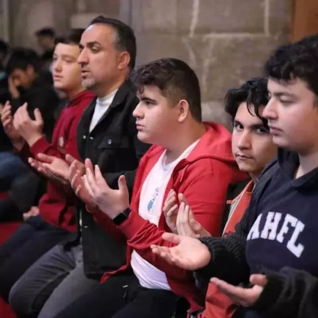 Aksaray Valisi Hamza Aydoğdu, çeşitli liselerden öğrencilerin oluşturduğu gençlik grubunun daveti üzerine Milli Eğitim Müdürü Hacı Ömer Kartal ile gençlerle Ulu Camii'de buluştu