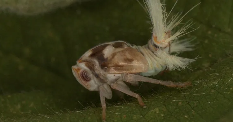 Vampir böcek olarak bilinen zararlının 2017 yılında Batı Karadeniz sahil şeridine kadar yayılarak Düzce-Akçakoca'da tespit ettiklerini söyleyen Prof. Dr. Öztemiz, "Zararlı kelebeğe benzemesine rağmen, kelebek ile bir ilgisi yoktur. Boyu yaklaşık 8-10 mm, kanat açıklığı 13-14 mm'dir. Ön kanatları üzerinde enine, açık gri renkte iki bant bulunur, arka kanatlar ise şeffaftır. Yumurtaları oval ve şeffaf olup 1 mm boyunda, 0,5 mm eninde ve soluk renklidir. Nimf evresinde, sarı renkte ve açık kahverenginde lekelere sahiptir. Olgun nimfler tavus kuşuna benzer. Son dönem nimfleri 4,5 mm boyunda ve 3 mm enindedir. Abdomenin sonunda vücut boyundan daha uzun, beyaz renkte ve uzunca mumsu iplikçikler mevcuttur" şeklinde konuştu.