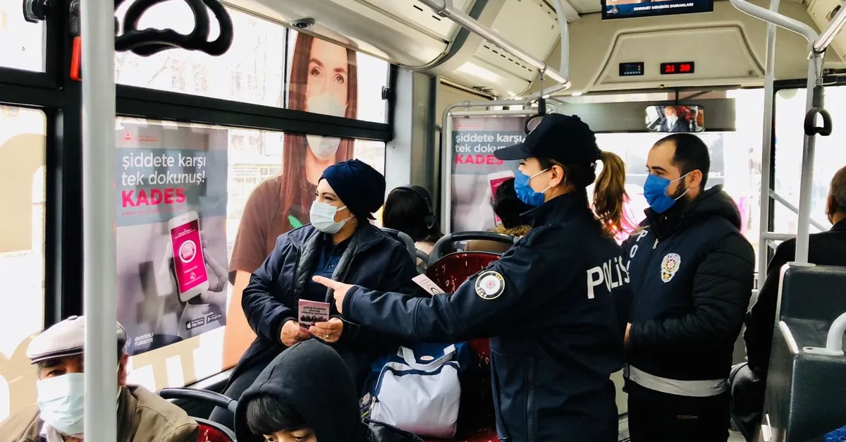 Aile içi ve kadına yönelik şiddetle mücadele kapsamında yürütülen çalışmaların devam ediyor. Van'da kadına yönelik şiddetin sona erdirilmesi amacıyla kurumlar arası koordinasyon, işbirliğinin geliştirilmesi ve farkındalık çalışmaları kapsamında, Van İl Emniyet Müdürlüğü Asayiş Şube Müdürlüğü Aile İçi ve Kadına Karşı Şiddetle Mücadele Büro Amirliğince Van Büyükşehir Belediyesi Ulaşım Dairesi Başkanlığı ile irtibata geçilerek KADES afişleri belediye otobüslerine asıldı.
