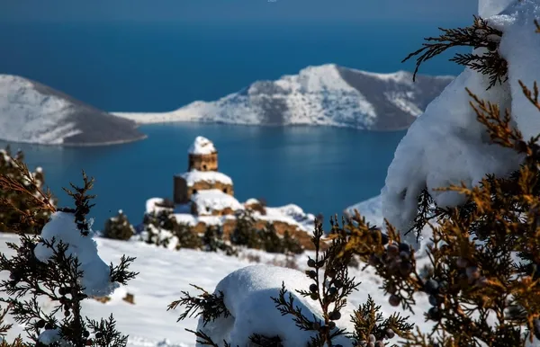 Van'ın en önemli tarihi ve kültürel yapılarından biri olan Gevaş İlçesindeki St. Thomas Manastırı diğer adıyla Altınsaç Kilisesi yazları olduğu gibi kış mevsiminde de müthiş doğasıyla hayranlık uyandırıyor.