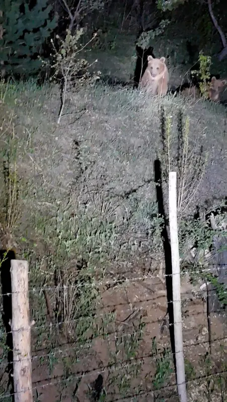 "Arkadaşlarla köyün içinde yürüyüş yaparken homurtular duyduk. Gece yarısı olduğu için yanımızda fenerler vardı. Biraz da tedirgin şekilde sesin geldiği yere fenerleri tuttuğumuzda 2 yavru ayının birbiriyle güreşip oyun oynadıklarını gördük. Oyun oynarken bizi fark etmediler bile. Bunun üzerine bende onlara seslenince bize döndüler. Bu görüntü amatörler tarafından zor belki de yakalanması imkansız bir görüntüydü. Ayıya bu kadar yaklaşılan ve adeta sohbet edilen bir görüntü daha görmedik. Bir süre sonunda annesi bizi uzaktan fark edince homurdandı ve yavrular hızla annelerine doğru kaçtı."