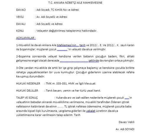 Velayet davası dilekçe örneği