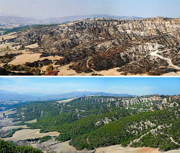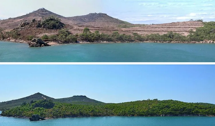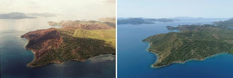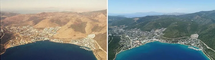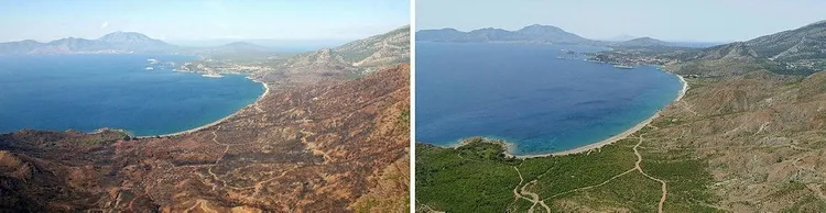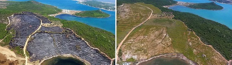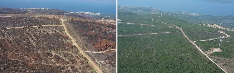 Ege ve Akdeniz'de farklı yıllarda çıkan orman yangınlarında zarar görüp yeniden ağaçlandırılan 13 bölgenin "öncesi ve sonrası" fotoğrafları Orman Genel Müdürlüğü internet sitesinden yayınlandı.