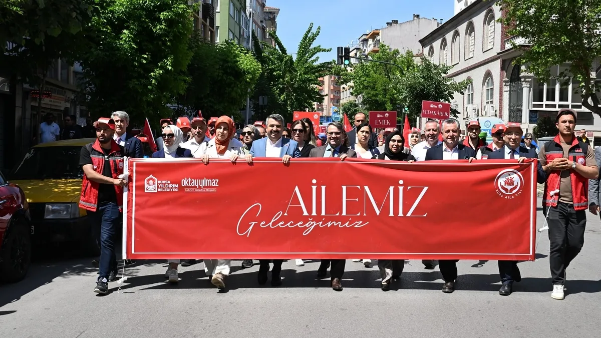 Yıldırım Belediyesi ve Aile ve Sosyal Hizmetler İl Müdürlüğü tarafından aile haftası dolayısıyla ''Ailemiz Geleceğimiz' farkındalık etkinlikleri düzenledi. Gökdere Meydanı'ndan Ahmet Taner Kışlalı Meydanı'na düzenlenen yürüyüş ile başlayan etkinliklere Yıldırım Belediye Başkanı Oktay Yılmaz, Sosyal Hizmetler İl Müdürü Faruk Uysal, Yıldırım Kaymakamı Metin Esen, Yıldırım İlçe Emniyet Müdürü Sakıp Yalta, İlçe Gençlik Hizmetleri ve Spor Müdürü Mehmet Demirci, AK Parti Yıldırım İlçe Başkanı İrfan Akkaya, AK Parti il ve ilçe yöneticileri, meclis üyeleri ve sivil toplum kuruluşu temsilcileri katıldı.
