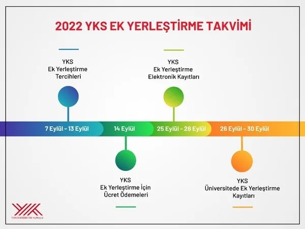 Yükseköğretim programlarına kayıt işlemleri tamamlandıktan sonra boş kalan kontenjanlar üniversitelerce ÖSYM'ye bildirilecektir. Yükseköğretim programlarının 2022-YKS sonuçlarına göre yapılan genel yerleştirme sonunda boş kalan veya kaydolmama nedeniyle dolmayan kontenjanlarına ÖSYM tarafından merkezî olarak ek yerleştirme yapılacaktır.