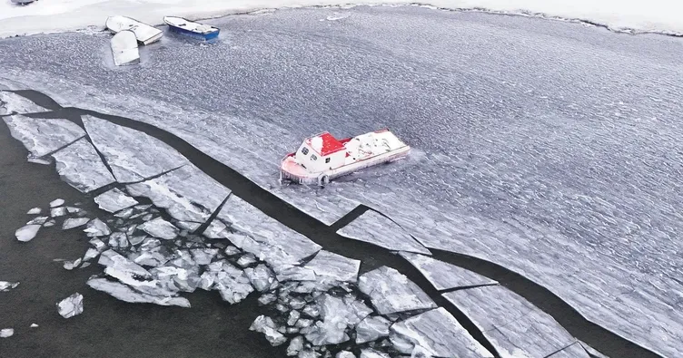 NAZİK GÖLÜ'NDE TEKNELER DONUP KALDI