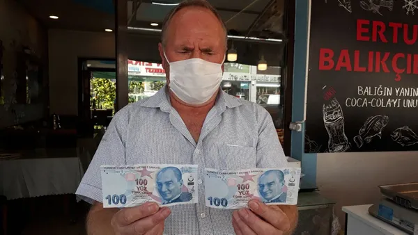 İlçede balıkçılık yapan Tuncay Yazgan, muhabirlere elindeki paralar arasında ön yüz sağ üst köşedeki 100 rakamının bir sıfırı eksik olan banknot gördüğünü söyledi. Başta kandırıldığını veya paranın sahte olduğunu düşünen Yazgan, daha sonra banknotun koleksiyon değeri taşıdığını düşünerek satışa çıkarmaya karar verdi.