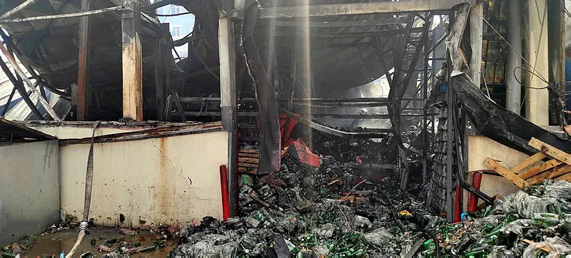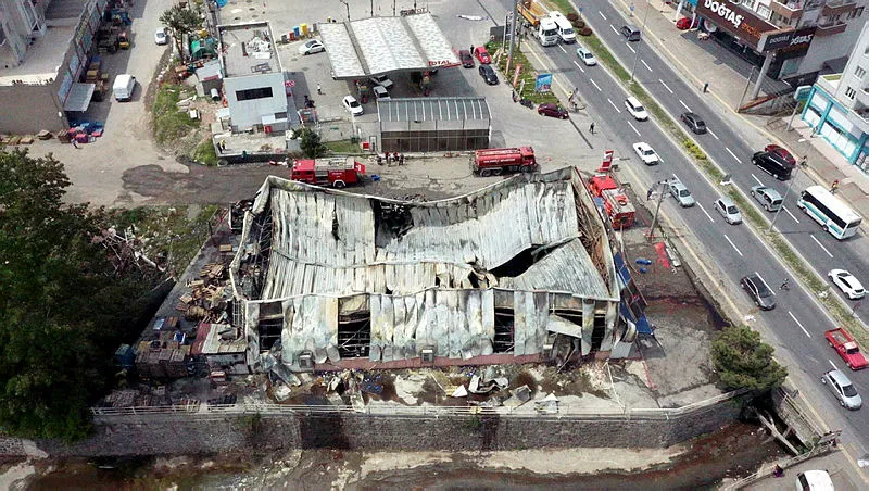 Yangında kullanılmaz hale gelen markette havadan görüntülendi.