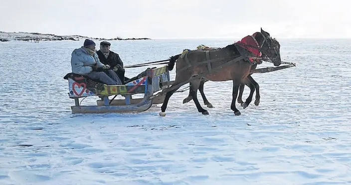 Buz tutmuş gölün üzerinde, rengârenk süslenmiş atların çektiği kızaklar... Fotoğrafları görüp imrenirdim. Ama bu kadarını hayal edemezdim. Tam da o 'Yapmadan ölme' listelerine girmeye layık deli bir deneyim... Çıldır Gölü, kocaman bir tatlı su gölü. Ciddi büyük, göz alabildiğine uzanıyor, 123 kilometrekare, sonsuzluk hissi veriyor. Kışın donduğundaki manzara, öyle böyle değil... Donmak diyoruz ama buz değil, basbayağı kar düşünün. Altı göl ama üstünde saatlerce yürüyüş yapabilir, hatta arabayla dolaşabilirsiniz! Kızakla gezmek acayip zevkli ve de azami fotojenik! Bol Instagramlık kare çıkıyor, faytonumsu kızakları sürenler en iyi fotoğraf veren noktaları tecrübeyle sabitlemiş, sizi yönlendiriyor! Çıldır Gölü'nde balık tutmak her mevsim mümkün. Ama kışın buz tuttuğundaki sistem ve heyecan başka... Önceden ağlar atılmış oluyor, sonra iki derin delik açılıyor ve bekleme başlıyor. O kadar karın, buzun altından ağlara takılıp yüzeye çekilen tatlı su mahlukatı görmeye değer. Buranın spesiyali, sazan... Atalay'ın Yeri'nde kalkanla karışır/ yarışır nefasette yapıyorlar. Ekmekler sobanın üstünde kızarıyor, rakıya buz yerine kar konuyor, fonda Ahmet Kaya çalıyor.