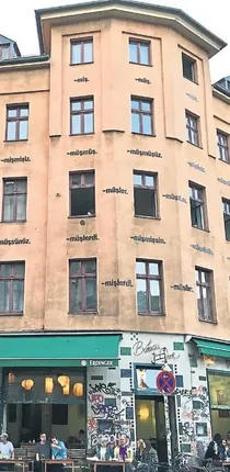 Berlin'de yaşayan Türkiyeliler kabaca üçe ayrılıyor sanki. 1. Bin yıldır burada oturmasına rağmen beşten fazla Almanca kelime öğrenmemiş, kendi gettosundan dışarı çıkmayan, sıfır adaptasyon ve sonsuz direnç formülünü benimsemiş olanlar. 2. İkinci nesil, biraz ayak uydurmuş ama ne tam buralı olabilmiş ne de Türkiyeli kalabilmiş sıkışıklar. İki dilde de arada kafa göz yara yara anlaşıyor, şehrin 'multi-kulti' havasına katkıda bulunuyorlar. 3. İyi eğitimli, akıcı Almancalı, Batılı edalı, çoktan oralı olmuş, kabul görmüş tipler. Tasarım, sinema, fotoğraf gibi daha entelektüel ve havalı alanların sakinleri... Evet, bu defa üç numaradayız, Kreuzberg'de, Oranienstrasse'de. Ayşe Erkmen'in 'Evde' projesi kapsamında 1994'te yaptığı bu cephe çalışmasının olduğu binanın altında da popüler bir kafe Bateau Ivre bulunuyor.