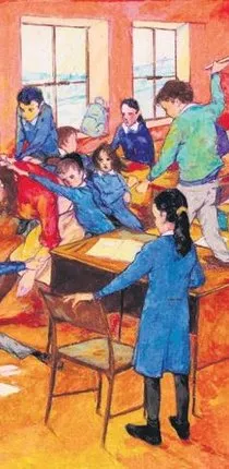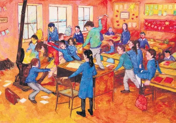 Resimde bir sınıf ortamı görüyoruz; ilk veya ortaokul... Ve öğrenciler, öğretmene düpedüz saldırıyor. Biri kadıncağızın saçını çekiyor, diğeri elindekini fırlatırken, biri sırtına binmiş, öteki kaçıp kurtulmasını engellemek istercesine bileğini tutmuş.