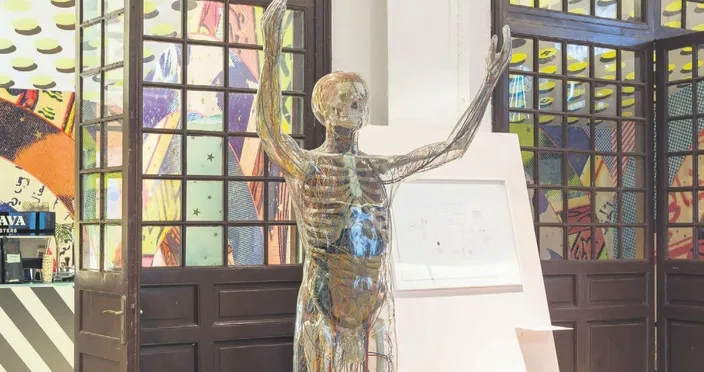 İKSV'nin bu yıl üçüncüsünü düzenlediği İstanbul Tasarım Bienali'nin en ilginç parçalarından olan Cam Adam birkaç haftadır Galata Özel Rum İlkokulu'nda sergileniyor.