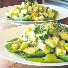 Beyaz peynirli antioksidan salatası, 1 ince dilim karpuz Beyaz peynirli antioksidan salatası Malzemeler: 2 dilim beyaz peynir, 1 kase marul, 2 adet dilimlenmiş salatalık, 1 avuç içi kadar ince kıyılmış maydanoz, 1 avuç içi kadar ince kıyılmış dereotu, yarım olgunlaşmış avokado, 1 yemek kaşığı keten tohumu, 1 yemek kaşığı zeytinyağı ve limon.