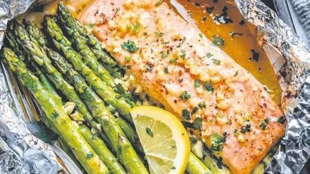 Fırında kuşkonmazlı somon balığı Malzemeler: (1 kişilik)