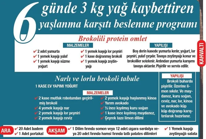 6 GÜNDE 3 KG YAĞ KAYBETTİREN YAŞLANMA KARŞITI BESLENME PROGRAMI