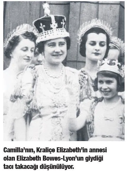 Taç giyme töreninde kralın eşi, kral tarafından kullanılan imparatorluk devlet tacından daha küçük ve daha hassas bir varyasyon kullanılarak taçlandırılır. Bu nedenle Camilla'nın, Kraliçe Elizabeth'in annesi olan Elizabeth Bowes-Lyon'un giydiği tacı takacağı düşünülüyor. Taç, 1937'deki taç giydirme töreni için tasarlanmıştı. Söz konusu tacın bizimle de ilgisi olması, Türk basınının dikkatinden kaçmadı... Tacın üzerinde ikinci büyük taş olarak nitelendirilen elmas, 1856'da Kırım Savaşı sırasındaki desteği nedeniyle teşekkür olarak Osmanlı İmparatoru Abdülmecid tarafından Kraliçe Victoria'ya hediye edilen elmas...