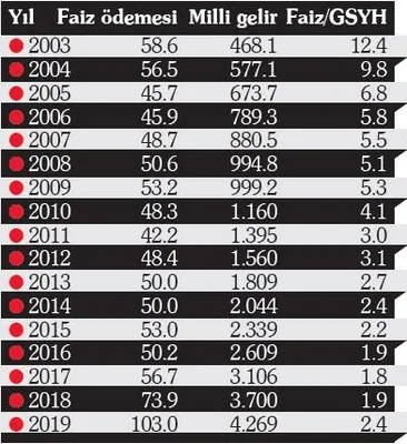 Çünkü, son 10 yılın faiz harcamalarının milli gelire oranının ortalaması 2.9... 2019'da ise bu oran 2.4.