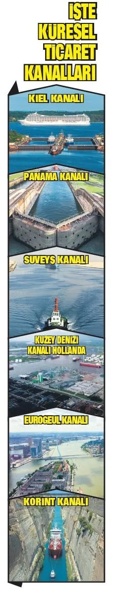 Dünyadaki büyük kanal projeleri arasında Almanya'daki Kiel Kanalı, Orta Amerika'daki Panama Kanalı, Mısır'daki Süveyş Kanalı başı çekiyor. Bunlar içinde uzunluk açısından ilk sırada Süveyş Kanalı bulunuyor. Süveyş Kanalı'nın uzunluğu 193 kilometre. Kiel Kanalı'nın 98, Panama Kanalı'nın 86, Kuzey Denizi Kanalı'nın 24, Eurogeul Kanalı'nın ise 44 kilometre. Yunanistan'ın kuzey kara topraklarını Mora Yarımadası'ndan ayıran Korint Kanalı'nın uzunluğu ise 6.5 kilometre. Kanal İstanbul 45 kilometrelik uzunluğuyla birçok projenin önüne geçerek, dünyadaki sayılı kanallar içine girecek. Dünyadaki örnekleri incelendiğinde kanal projelerinin tamamlanma süreleri 8 ila 11 yıl arasında. Kanal İstanbul'un 6 yılda tamamlanması bekleniyor. Bu haliyle de dünyada en hızlı tamamlanan projelerden biri olacak.