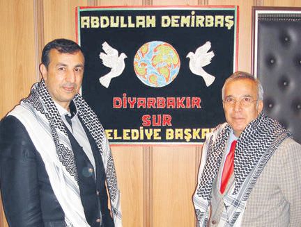 Sur Belediye Başkanı Abdullah Demirbaş'ın odasında "bir tablo" ile "iki fotoğraf" dikkatimizi çekti.