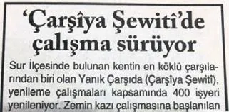 Eskiden yangın geçirdiği için halk "Çarşiya Şewiti" diyor... Türkçesi "Yanık Çarşı."