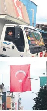 Kamyonun önü... "Bayrakla, Atatürk resmiyle" dolu.