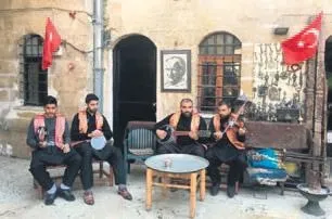 Avlusunda saz ekibi... Antep türküleri söylüyordu... Turistler resim çekiyorlardı... "Kömürde Türk kahvesi... Menengiç kahvesi" içiyorlardı.