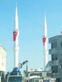 Minarelerde bayrak asılı...