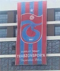 Bir işyeri... Vitrinde koca bir Trabzonspor bayrağı.