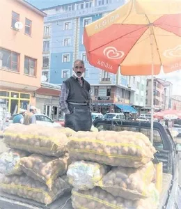 Çarşıda... Çuval çuval patates yüklü bir araç... Bir çuvalda 30 kilo patates var.
