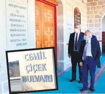 Şehrin girişinde bir mermer kaide... Cemil Çiçek Bulvarı.