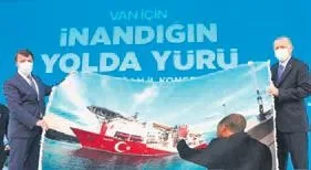 Halının üzerinde Mavi Vatan'da bayrağımızı dalgalandıran iki gemimizin resimleri vardı... Fatih ve Oruç Reis.
