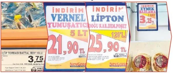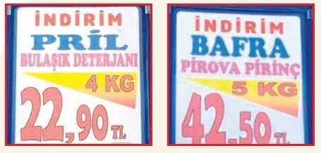 Ürün ürün "örnekler" verdik... Peynir... Süt... Sebze... Meyve... Fiyat etiketi.