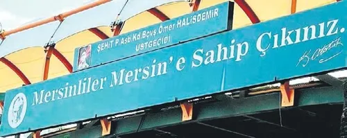 Bulvarlarda... Meydanlarda... Her yerde... Aynı yazı... Atatürk'ün, Mersin'i ziyaretinde söylediği söz: