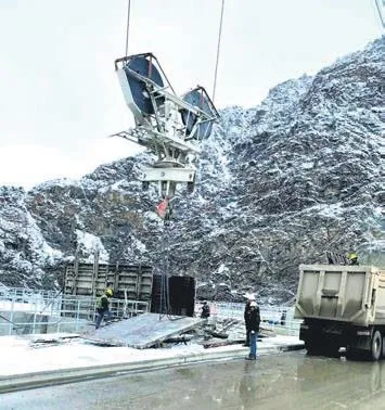 İnanılır gibi değil... Koskoca iş makinesi... "Teleferikte... Hava hattında... Tepemizde."