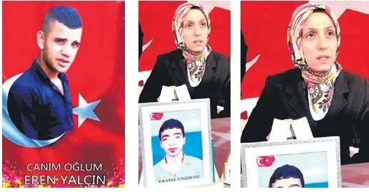 Annelerden biri... Duvardaki fotoğrafları gösteriyor... "Abi... Yaz bunu... Yaz" diyor:
