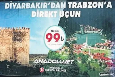 Diyarbakır-Trabzon uçuşları başlamış... Salı... Cumartesi... "99 lira." Diyarbakır-Kıbrıs uçuşları başlamış.