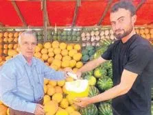 Önce... İkram faslı... Kavunu kesip bir dilimini uzatıyor... Sonra da sorumuzu yanıtlıyor: