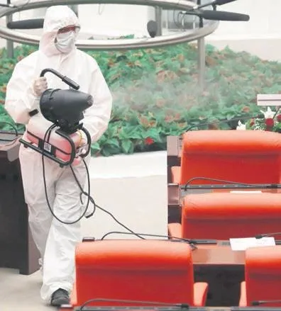 Genel Kurul Salonu'nun ilaçlanması... Bomba arama köpekleriyle kontrol... Hepsi düşünüldü.