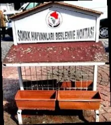 Gezerken... Dikkatimizi çekti... Şehrin pek çok yerinde... Parklarda... Kaldırımlarda... "Sokak hayvanları beslenme noktası."