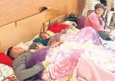 Kültür Merkezi... Yer yatakları... Evi yıkılanlar, evinde yatmaya korkanlar, burada konaklıyorlar.