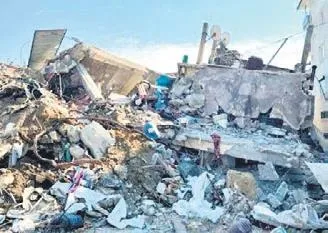 Bir başka site... Yine yüksek katlı... Binalardan biri yerle bir... Dağ gibi enkaz... Ama öteki binalar ayakta.