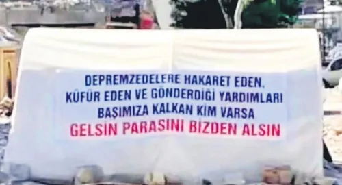 "Depremzedelere hakaret eden, küfür eden ve gönderdiği yardımları başımıza kakan kim varsa gelsin parasını bizden alsın."