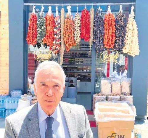 Esnaf... Konteyneri öyle bir süslemiş ki... Önüne kurutulmuş ürünleri asmış... Dizi dizi.